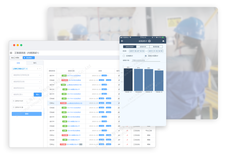 便攜式移動端巡檢,保障設(shè)備運行正常,及時上報事故隱患。